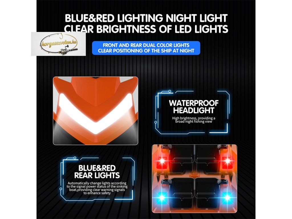 Biztonság: Ha merül az akksi, a távirányító csipogással figyelmeztet, a hajón lévő LED-ek pedig mutatják a töltöttséget.